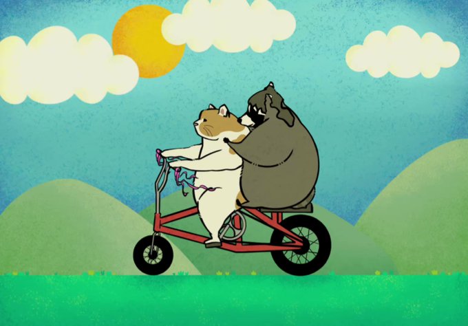 Perfect duo on a ride😎 #cats #CatsOfTwitter #Raccoon #trashpanda #cycling #DigitalArtist #art #animation
