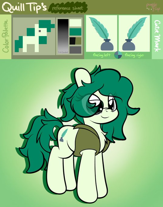 Commissioned an MLP artist with my main account for my OC's ref sheet. Introducing Quill Tip! Thanks @purpleflix!