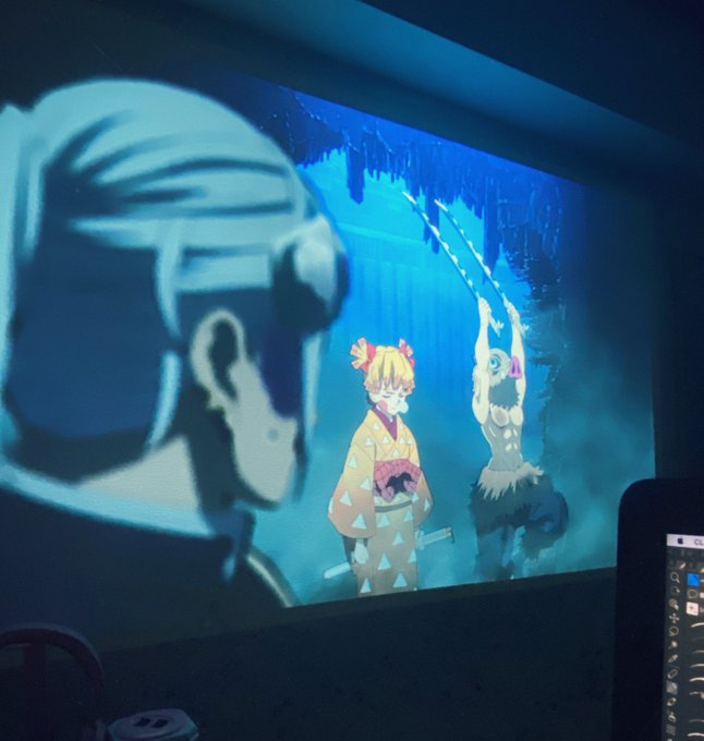 プロジェクター最高…😭 もう少し遠い壁に投影して、画面もっと大きくしたいな〜引越しするしかない🤷♀️ そして原稿進まない❣️