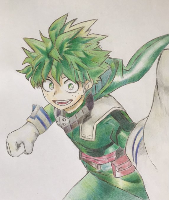 初めて色鉛筆でヒロアカのデク模写しました!頑張って描いたので❤️♻️リプいただけると励みになります😊