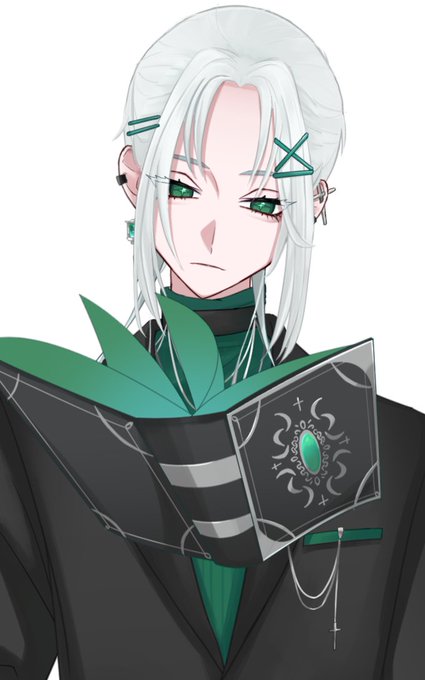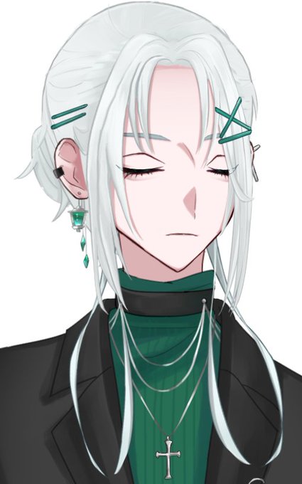 髪型は、後ろで少し結んでいて髪を前に流してる感じです。ハーフアップ…に近い感じだと思います🤔
