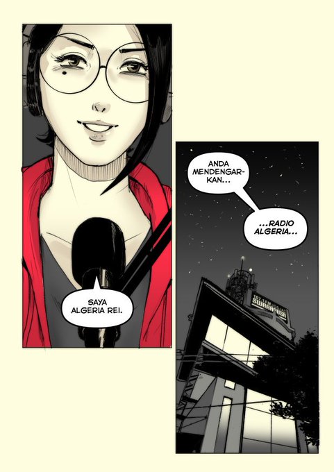 Radio Algeria : Horror On-Air. Kumpulan komik kisah aneh dan mengerikan di sekitar kita. Segera hadir tahun ini. Edisi spesial webtoon berwarna akan hadir di app komik "Comico Indonesia" @comicoIndonesia