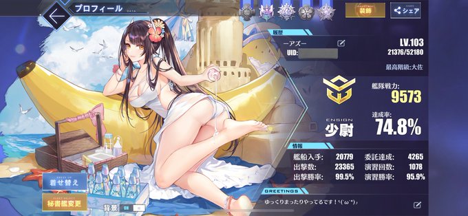 #メンテなのでアズレンプロフィールを無言で貼る