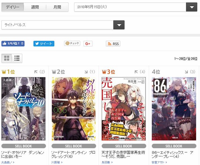 TSUTAYAさんの「ライトノベルス」デイリーランキングにて「天才王子の赤字国家再生術~そうだ、売国しよう~」が3位にランクアップしています。ありがとうございます! https://t.co/oLpsFeitxq #売国王子