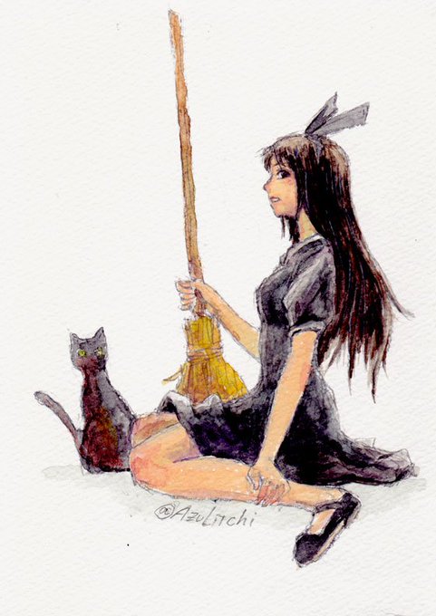 ブログ記事に載せたのはiPhoneカメラで撮影した絵。これはスキャナーで取り込んだ方。色を濃く取り込むと緑の彩度が妙に上がっちゃう…設定が難しいですね。 #水彩 #イラスト #魔女の宅急便 #キキ https://t.co/NUbUNZu4qE