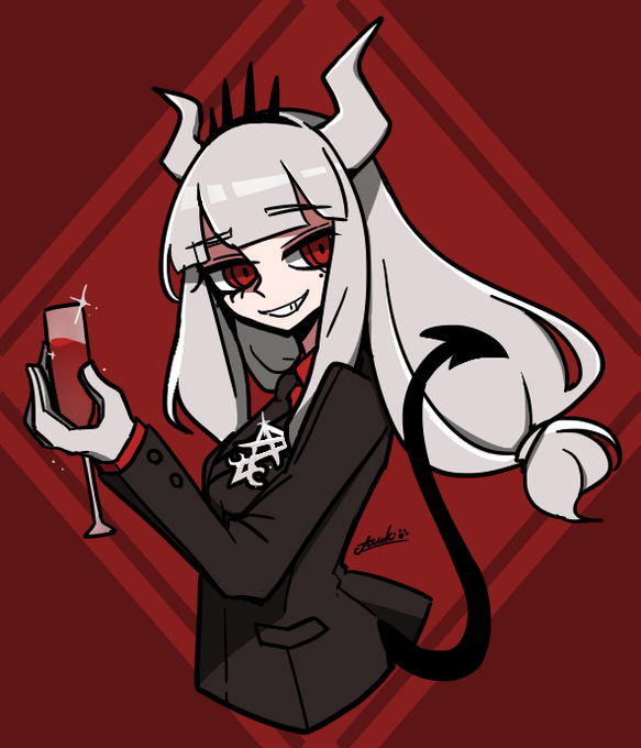 #Helltaker お祝い描いてはいたんだけど間に合うかわかんないんでとりあえず思い入れあるの再掲しておきますね!!! 1周年おめでとうございます…!!!🎉🎊🎉