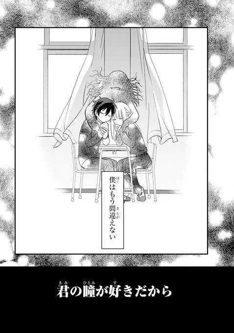 瞳が好きな2人の話(26/26) 最後まで読んでくださりありがとうございました! 2018年ガンガンJOKER4月号に掲載させていただいた『君の瞳が好きだから』でした。 現在は同雑誌で『オバイケ未来案内所』という漫画を連載させていただいておりますので、良ければそちらもお願いいたします!