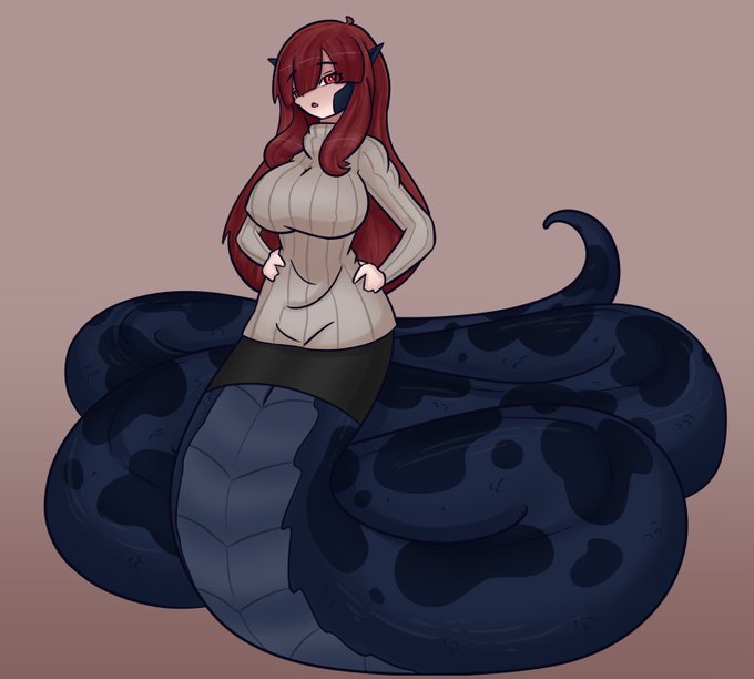 New OC! meet June! a 15M long cow print pattern Lamia with a special poison that makes booba go bwomph 💦 Nude Version and two alt outfits