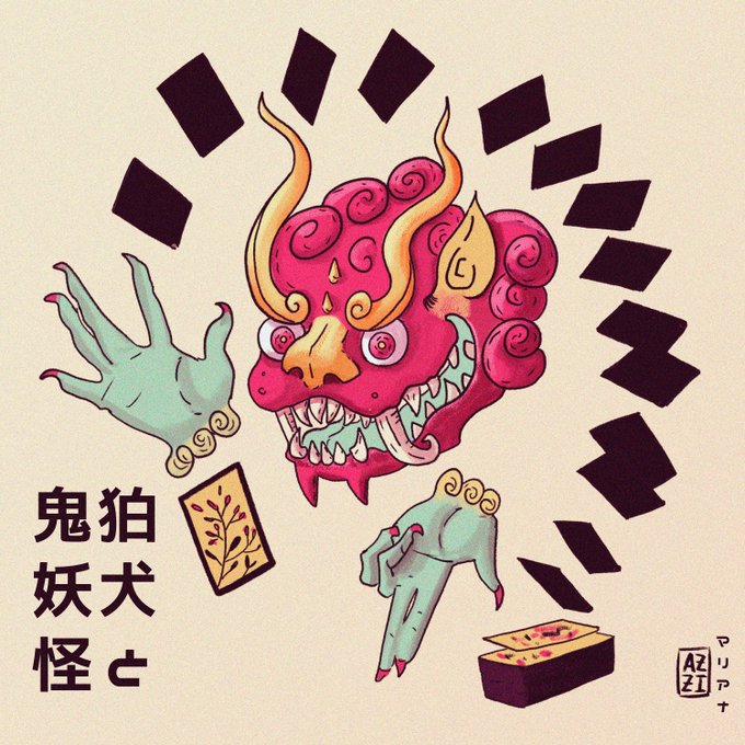 My entry for the #cdchallenge my komainu + oni yokai