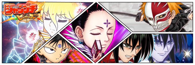 なぜこの人選なのかは不明なジャンプチバナー…(●´ω`●) 作品的にはメジャーどころかなと思ったけどBLEACHを入れてなかった(笑) #ジャンプチ