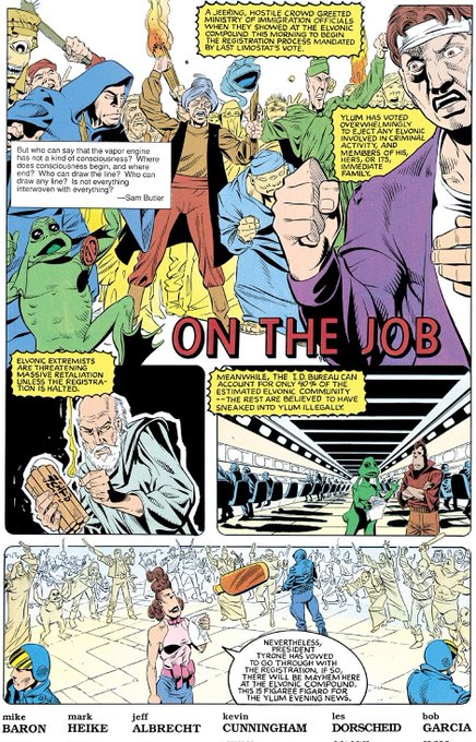 @Exalted_Speed At first, I was like oh boy evil cult is after are heroes, but then the situation surrounding cult began to look more "real world politics" inspired. Elvon followers started to sport more "Middle Eastern attire" and I don't think I need to explain what Mike Baron was doing here.