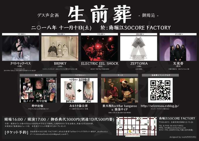 11/10(土)生前葬 御周忌@大阪南堀江SOCORE FACTORY