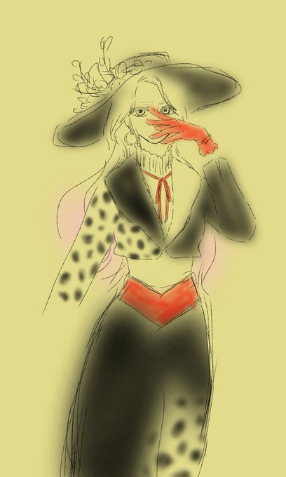 ヴィランズの手下風なメンバーいいなと思ってMr.ダルメシアを参考にMs.を描きはじめたんだけど