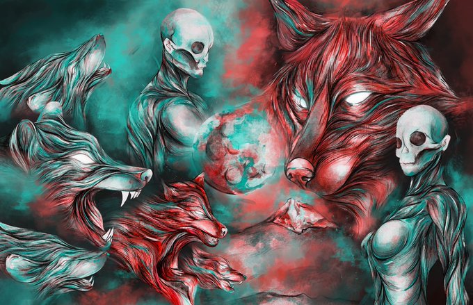 Metztli — Luna nueva (ilustración híbrida) / Pintura acrílica y tinta sobre papel fabriano, retoque digital.