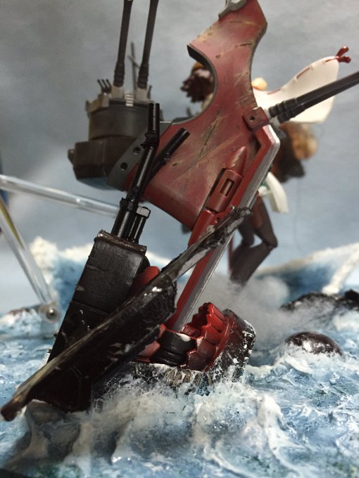 コイツのギミックがどう見ても刀か衝角にしか見えないので、それを意識して作りました。カッコイイけど役立たなそう(笑) キズや汚しもソレっぽくかけてみました なお、今回の製作には、ぽっぽちゃん1体を犠牲にしております 南〜無