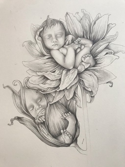 Baby’s growing in flowers, not thumbelina but an entirely different kind of story. #bookillustration #bookart #pencildrawing #bookstagram