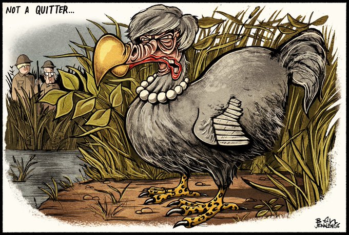 Today's @guardian cartoon on #TheresaMay claiming she's not going anywhere...