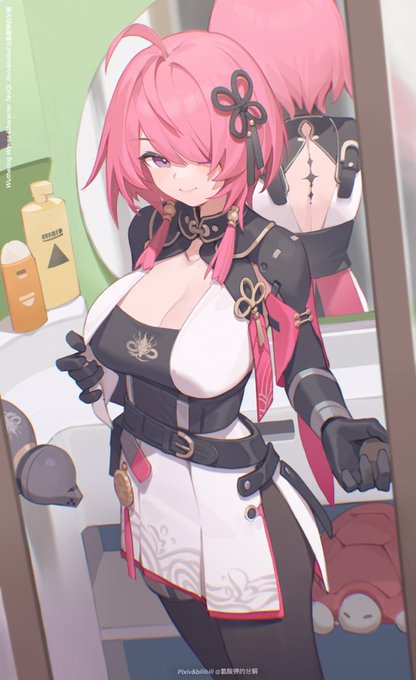 这次画的是鸣潮的桃祈。慵懒少女浴室中的更衣准备…(泳装版本也一同附上) Taoqi from Wuthering Waves.