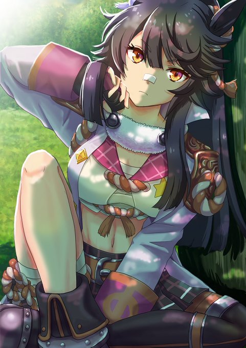 ナリタブライアン背景付き。 木陰の木漏れ日を描きたかったのですがなかなか難しい・・・練習や研究を継続しないといかんかも。 #ウマ娘