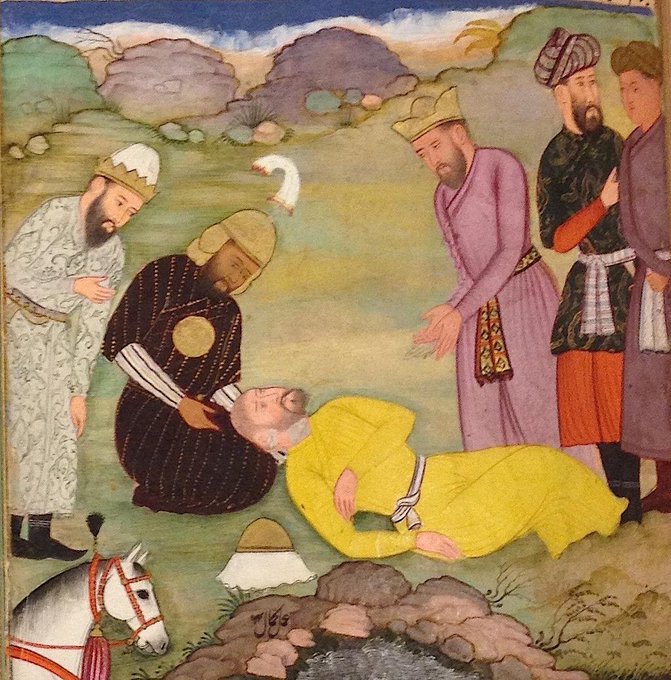Almost forgot #MughalMonday again! Here Iskandar comforts the dying Dara, by Kamal, early 17C #BLOr5600
