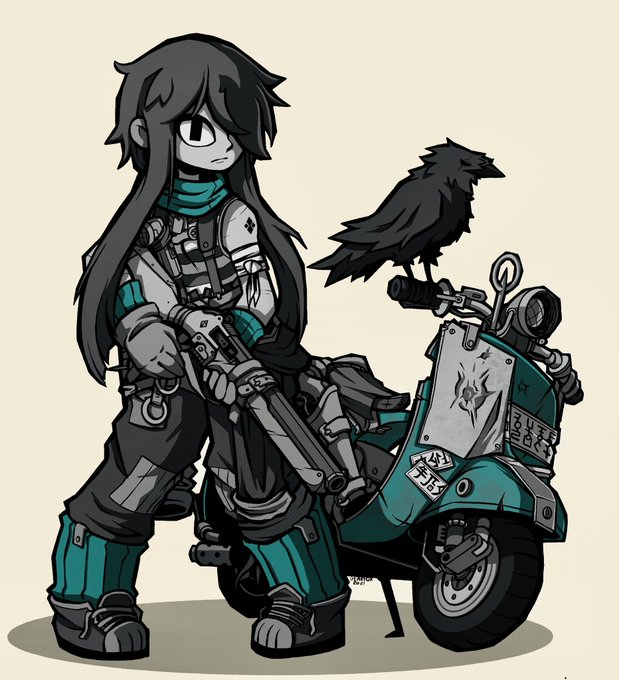 She doesn’t have a name yet, and I haven’t finished the background, but here she is with her Vespa.