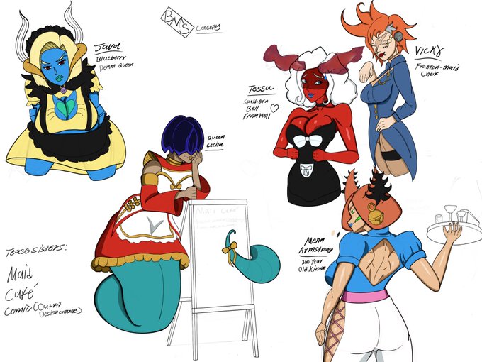 Maid cafe designs concepts for my Tease Sisters Characters. Want to put together a comic skit down the road.