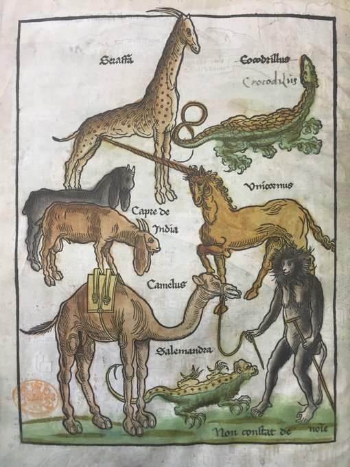 Have a joyful #NationalUnicornDay with these hand-coloured animals from the Holy Land on a folio from Breydenbach’s ‘Peregrinatio in Terram Sanctam’ 1486.