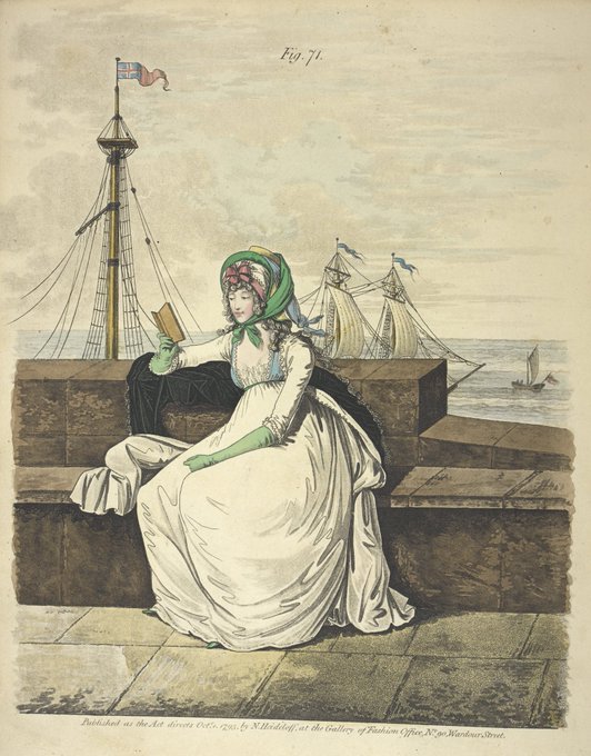 A beautifully serene #SundayStuff image from the October 1795 issue of Niklaus Heideloff’s periodical ‘Gallery of Fashion’. His beautiful coloured engravings were published between 1794 and 1803.