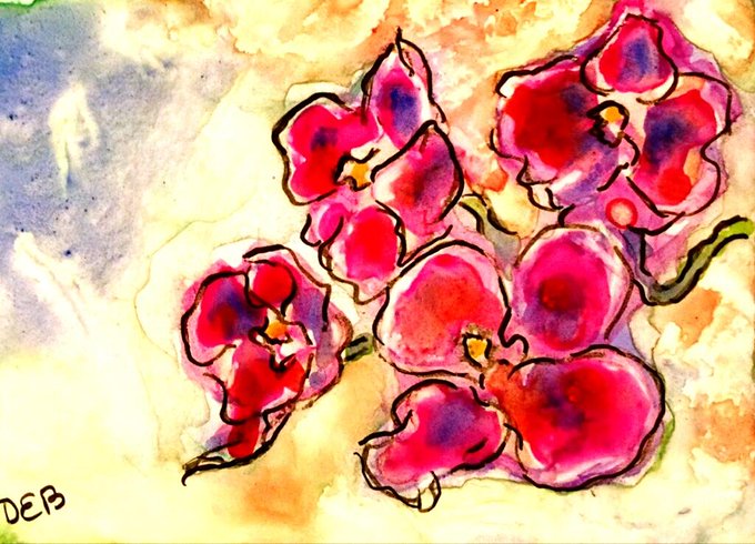 Sketch from this morning applied over watercolor backdrop.