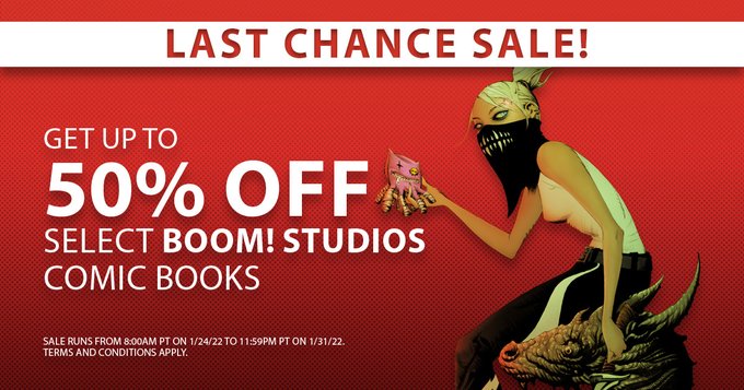 Get ready for the Last Chance sale on the BOOM! Studios webstore starting Monday 1/24 @ 8am PT! Soon you can finally pick up those titles you've been putting off, but don't wait too long, because they'll be gone before you know it!