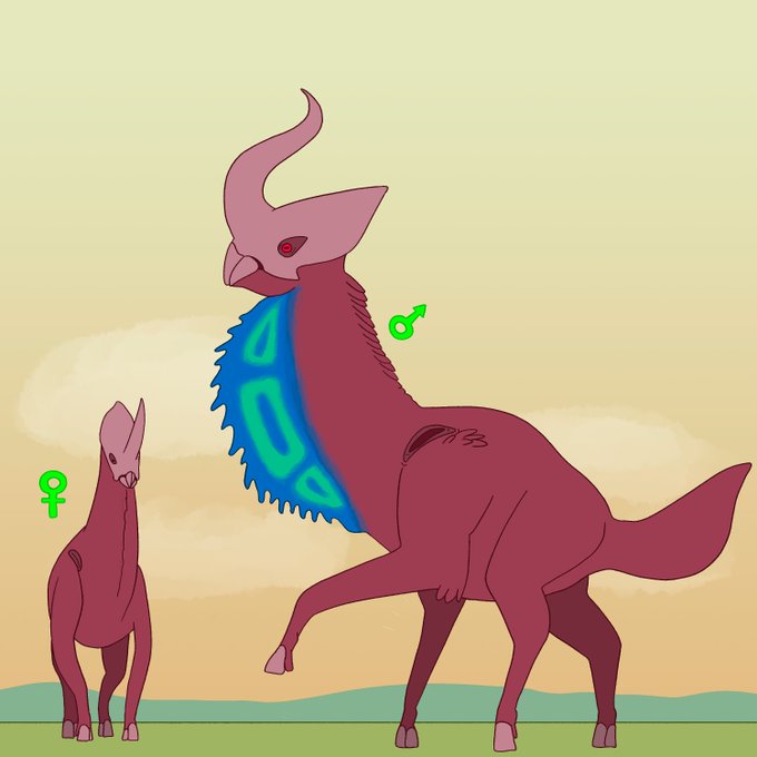 Dimorfismo sexual observado entre Unicórnios das planícies. Aqui vemos um macho exibindo comportamento de corte.