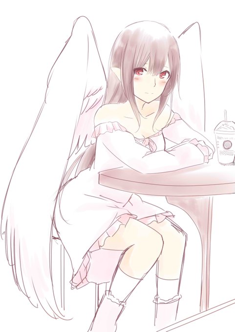 フォロワさんの天使さんに便乗して30分?くらいのラクガキ。 スタバでまったりする天使さん(?) 特に何も考えずに描いたオリキャラさん