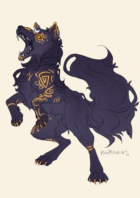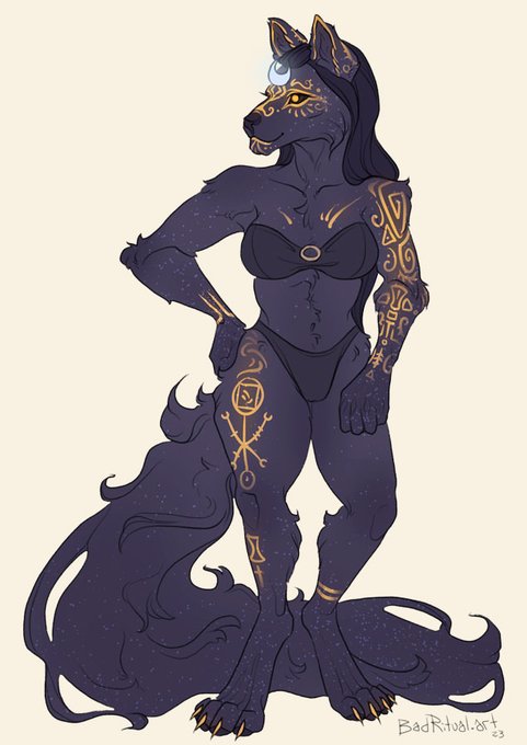 An anthro and feral version of a Deathhound character named Morrighan. Coloured sketch commission.