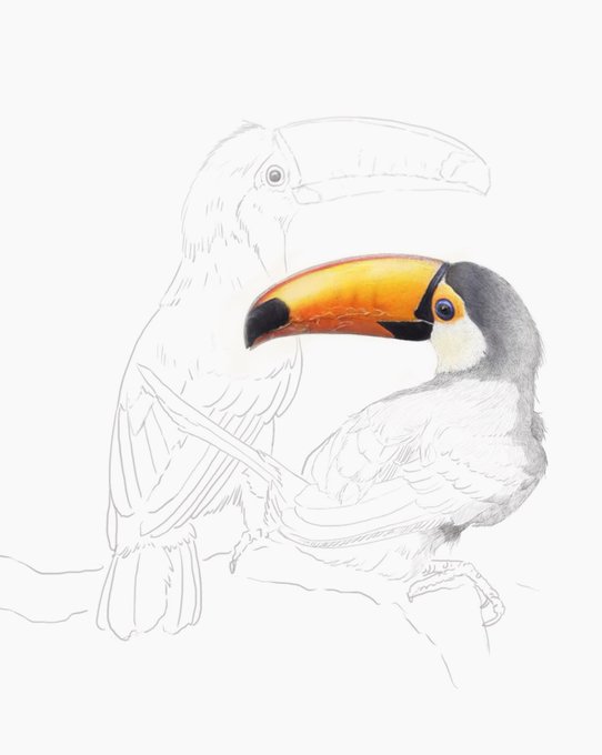 Toucans coming along nicely, I’ll finish drawing the background one hopefully by the end of tomorrow and then I can move on to the next illustration, (a woodpecker)