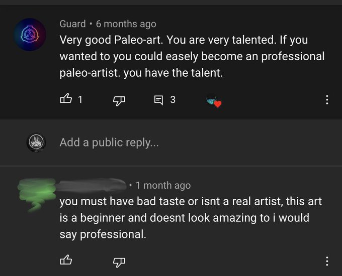 Just received this comment on an old YouTube video. While it felt good to post my art four years later, I know that if I had received something like this then it would have really sucked. It goes to show never look down on newer artists, even if their stuff isn’t the best rn.