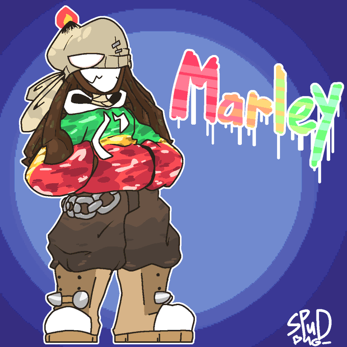 well since i keep making them, i decided to make an actual food oc. this is Marley, he's a pot brownie and the best college friend you could ask for!!