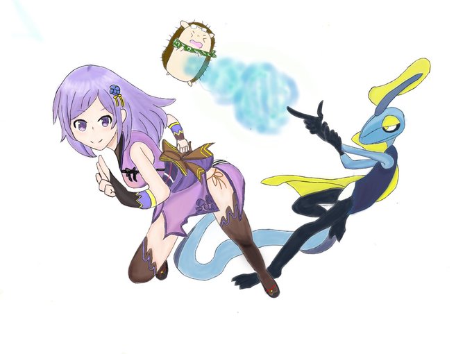 携帯のアプリで描いてみました! 瑠璃姉とインテレオン! 二枚目はそれっぽい背景を塗ってみました。 あーちゃんのも描きたいなぁ〜ポケモンなに好きなんやろ #朝ノ瑠璃 #朝ノ絵巻