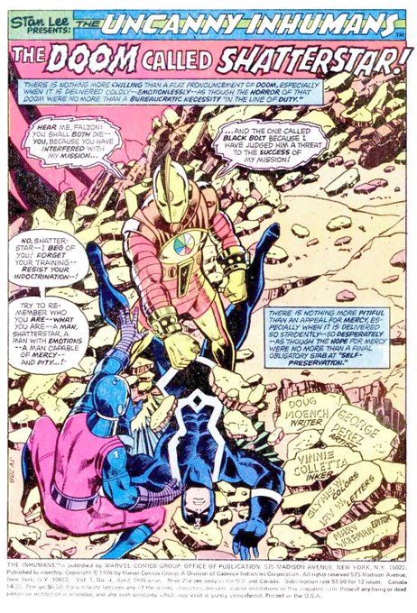 An early run (1975) for Pérez and writer Doug Moench. Medusa, Black Bolt, and Triton always have such eye-catching presences; perhaps someday a long run title could take off. This series lasted 12 issues. Their adjective was “Uncanny” also!