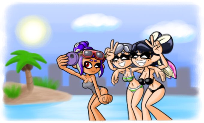 Since I’ve been asked about it more than once I figured I’d hold a mini Art Raffle for people who want a basic Summer-themed drawing with their Splat OC (like the examples below). Rules to enter are the usual: