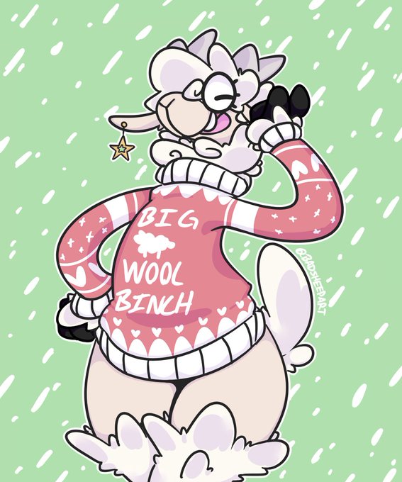 Please enjoy these images of my fursona in quality Christmas sweaters.