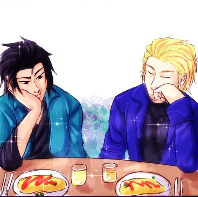 Ultra Magnus and Sixshot as humans, waiting for sunset to eat :>