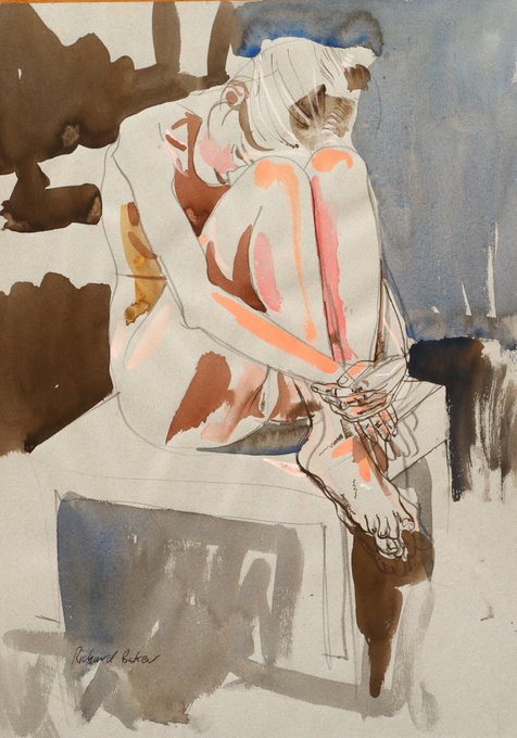 An old life drawing with pencil, watercolour wash and a touch of pen-work clarifying the hands and feet.