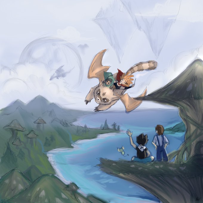 Ptit dessin pour le #CyprienDessin. Même si c'était libre, Minori, ça m'a fait tout de suite penser au cadre du court-métrage donc voici Roger et Minori qui se balade main dans la main 😁