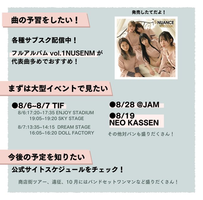 【NUANCEを紹介したい2022】 新体制のヌュアンスを見てくれファンアートを作りました。今年のヌュちゃんは熱いから…TIFもぜひに… (アルバム画像のみお借りしました) (全て個人の感想です) #NUANCE #ヌュアンス