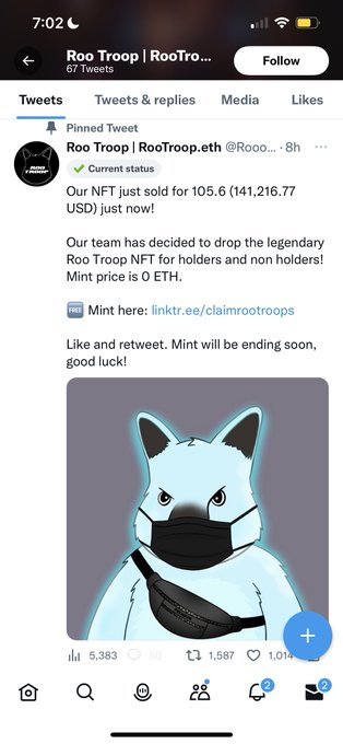 Get yourself a @RooTroopNFT and you’ll feel you’re worth 100ETH as well