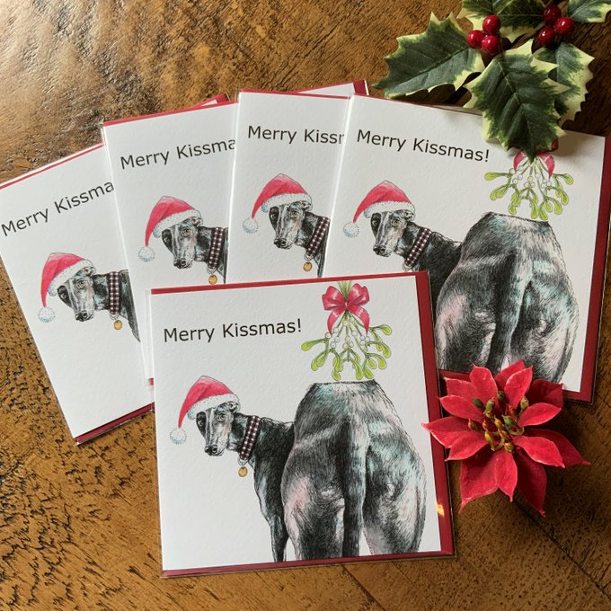 I'm sure no one wants to be thinking about the 'C' word at the moment, but I've just listed a new Christmas card. Available as packs of 5 or single cards. #Greyhound https://t.co/xQuHZQ3tky
