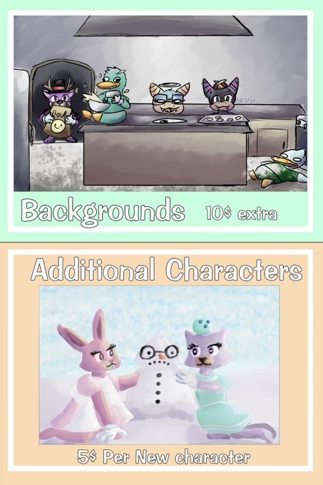 commission prices UPDATED I do charge 5$ extra for complicated characters. I try to be as fast as possible but it can take up to 2 weeks depending on how busy I am. Amazon only for now (no paypal)