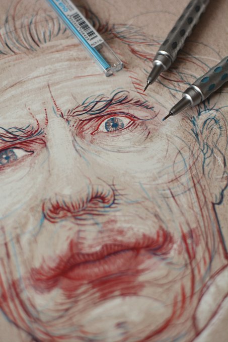 The piece was created 12 yrs ago for Przekroj mag. Back then I did all my portraits in pencil and then coloured them digitally.