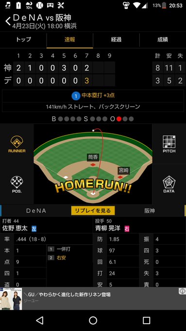 佐野くんホームラン打たないかなーて思ってたらほんとに打ったぞーーー!!!これはサノス神 #baystars