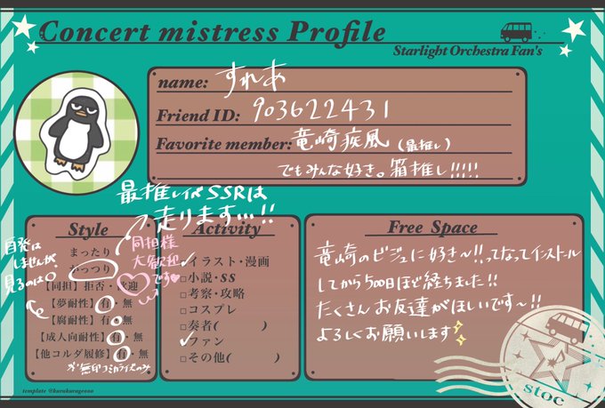 自発が苦手なのでプロフィールお借りしました…! スタオケが大好きでヲタ活とイラストを主にしています💌 ♡・RT等でお迎えに行きます! よろしくお願いします💞 #スタオケプロフィール #スタオケ好きさんと繋がりたい